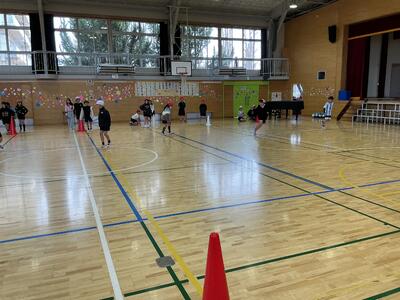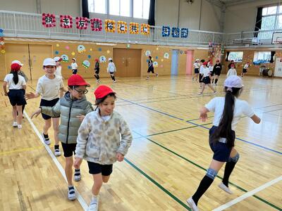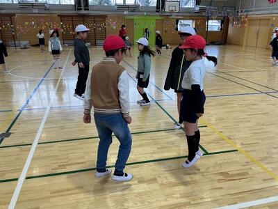 在校生と最後の思い出を作ろうと「卒業レク実行委員」が中心となって、昼休みにレクをしています。5年生とは、真剣勝負。2・3.4年生とは「下級生が楽しめるように」とルールを変更したりととても充実した時間を過ごしています。