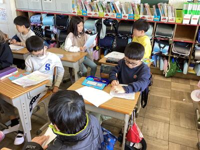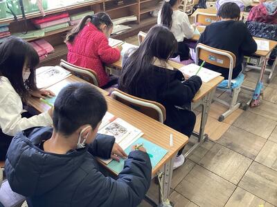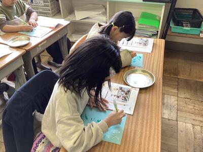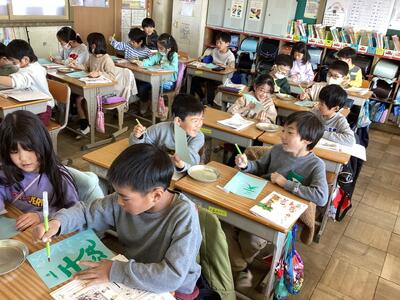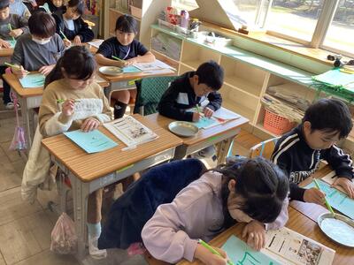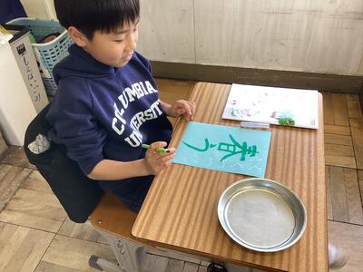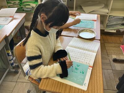 硬筆とは異なる感覚の毛筆。その感覚の楽しさからか,字を書く集中力が高く,なんだかいつもよりもさらに良い姿勢で文字を書く姿が,とても立派に見えました。新しいことをたくさん学ぶことのできる3年生が楽しみになった様子で,とても嬉しく思います。