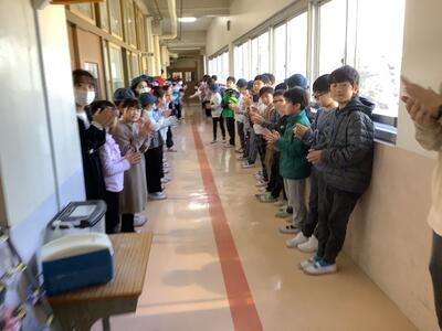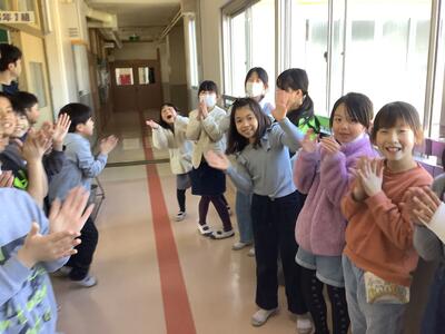 3年生は,花道を通る6年生に「ありがとう」と伝えたり,ハイタッチをしたり,涙を流したりと,一人一人が別れを惜しみました。教室に戻ると「私たちも6年生のようになりたい!」「かっこよかったね」と話す姿がありました。3年生も残り4日となります。来週は,学年のお別れレクがあります。残された時間,3年生らしく、駆け抜けてほしいと思います。