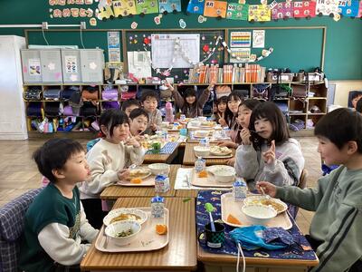 3月14日(木)は給食最終日でした。メニューは,子供たちに大人気のカレーライスでした。おかわりをする子供も多く,みんなおいしく食べていました。この一年間で,給食当番の配膳や片付けなど自分たちでできることが増え,成長を感じます。3年生でも給食をたくさん食べて,元気に過ごしていきましょう。