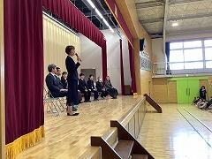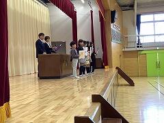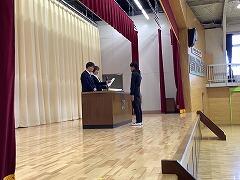 予行練習では,自分達の卒業式を意識するために,6年生の様子を学ばせてもらいました。練習の最後には,5年生の児童会役員から,委員会,体育発表会,さよなら集会を通しての思い出を6年生に伝え,引き継ぐ意思を伝えました。