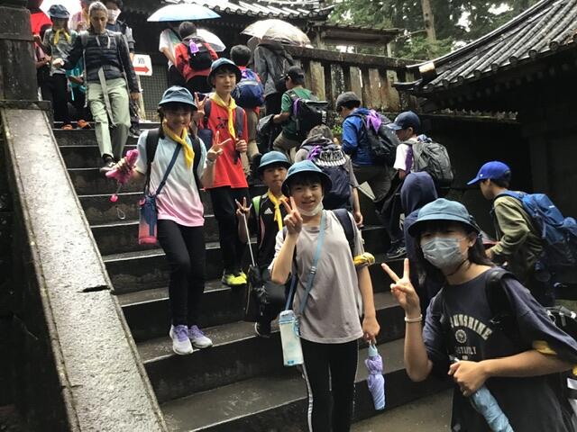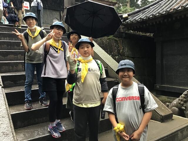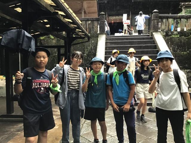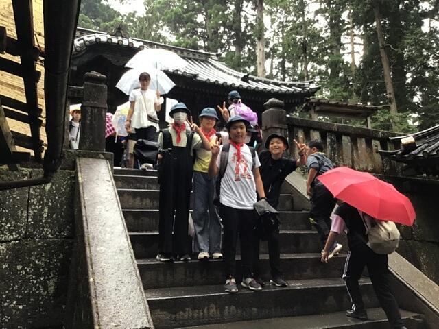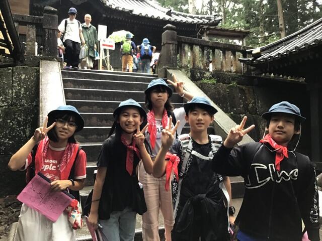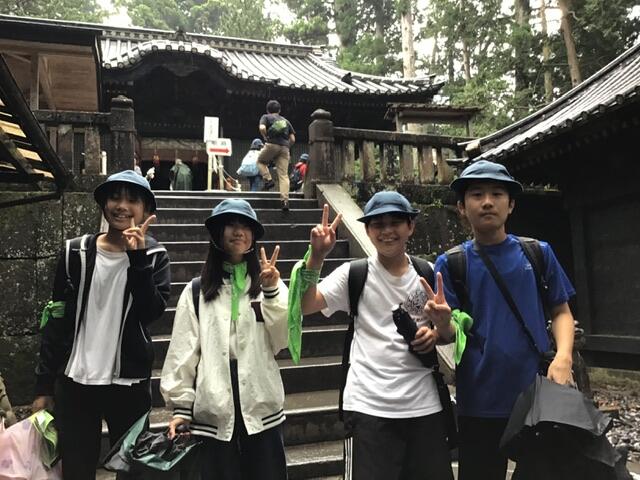 コロナ禍が明けて、東照宮にはたくさんの観光客がいました。なかなか前に進めず計画通りの見学コースをまわれなかったグループもあるようですが、みんな世界遺産を肌で感じる貴重な時間となりました。 現在、子供たちは冨士屋観光センターで昼食をとっています。