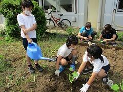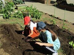 野菜を植えても,夏休みに収穫の時期を迎えてしまうため,時期をずらして種をまきました。