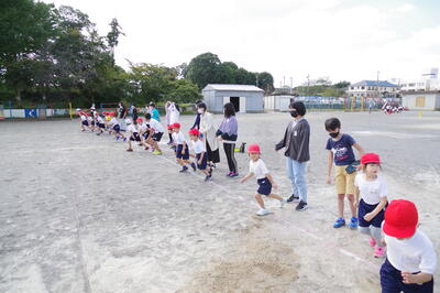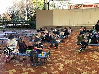 防災公園でのレクは,すべて校外学習実行委員が企画しました。最初は,だるまさんの一日(学年全員バージョン)なかなか鬼の声が聞こえず大苦戦しましたが,みんなで楽しみました!