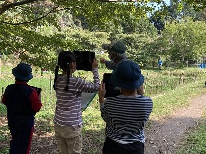 今回は秋の様子を観察しに行きました。一人一人がテーマを決めてから調べました。下田の杜の方に質問をしている子やテーマにそった植物や生き物の写真を撮っている子がいました。また,下田の杜の方から様々な植物の種について学びました。どのようにして遠くまで運ばれるのか,種が育つには何が必要か,種を使った遊びや種を使って選択ができることなどを学びました。池のそばには人だかり。何がいるのかと思えば,なんとカワセミがいました。とても良い観察となりました。