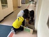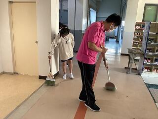 あおぞら学級では,掃除の時間,あえて濡れた新聞紙を床にまいてから掃くことで,ほうきの使い方を学習しています。どの子もすみずみまで,一所懸命にきれいにしています。
