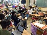 ITアドバイザーの先生からプログラミングについて教わりました。スタート地点からゴール地点まで,主人公をどのように動かせばよいかを考えました。お菓子の形をしたカードを並べて,撮影をすると命令をすることができます。子供達は失敗しながら,どうすればうまくいくか一生考えていました。終わった後,「また,したい。」「楽しかった。」という声が多く聞かれました。
