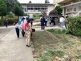 感染症対策のため,校庭で実施しました。