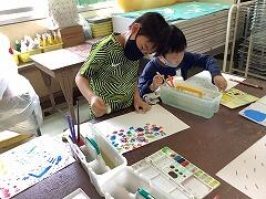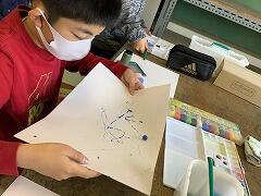 様々な方法で絵の具を使い,思いがけない形や色を楽しむことができました。