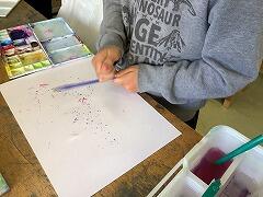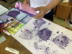 いつものように筆を使うのではなく,身の回りにあるものを使って,様々な方法で画用紙に色を重ねていきます。