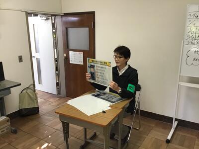 また,不審者が侵入しなかった各教室でもバリケードを作り,静かに教室に待機していました。訓練の後,警察の方から「校外で不審者に遭遇したときの身の守り方」について講話をテレビ放送で聞きました。「子ども110番の家」の表示や防犯の合言葉「は・ち・み・つ・じ・ま・ん」・・・・・はなしかけてくる,ちかづいてくる,みつめてくる,ついてくる,じっとまっている人は「ん!」と注意することなどについてお話をしていただきました。