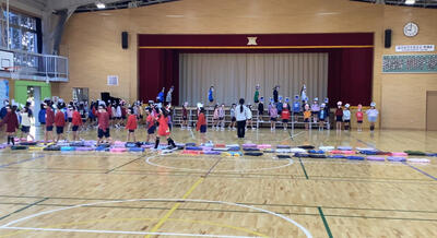 来週13日の1,2時間目は体育館で,本番と同じように取り組みます。持ち物の確認もお願い致します。