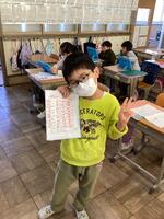 毎週水曜日の生活・学習の時間はサカスクの方々にご協力をいただきながら,かけ算のプリント学習を進めてきました。15分という短い時間でしたが,子供たちは毎回,集中してプリント学習に取り組み,サカスクの方から花丸をもらうと,とてもうれしそうに喜んでいました。今週2月28日(水)が最終回だったので,クラスの代表の子供が,みんなで書いたお礼のお手紙をサカスクの方に渡しました。今までご協力,ありがとうございました。