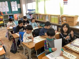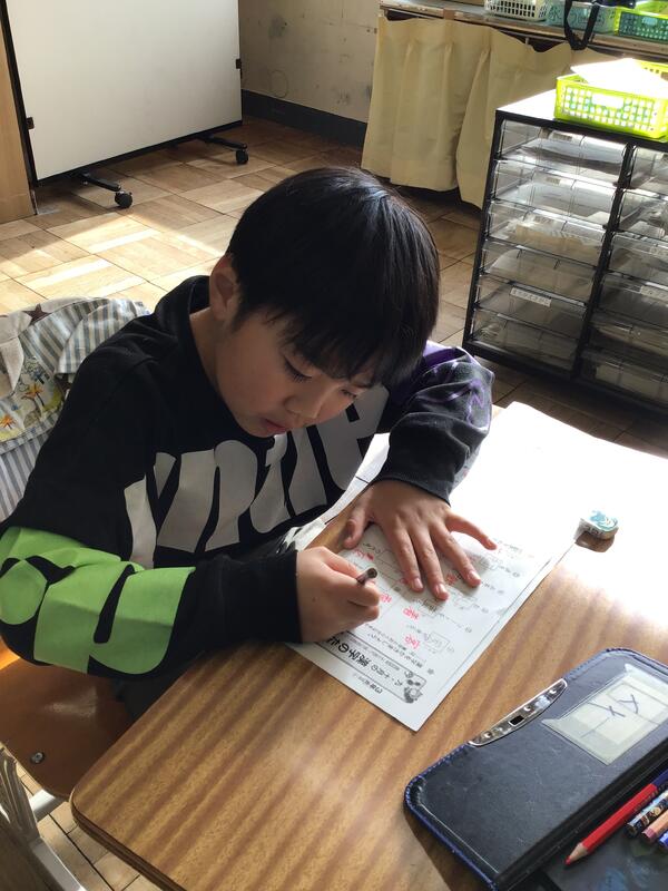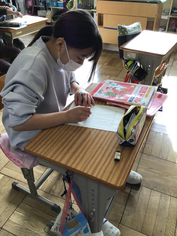 硬筆とは異なる感覚の毛筆。その感覚の楽しさからか,字を書く集中力が高く,なんだかいつもよりもさらに良い姿勢で文字を書く姿が,とても立派に見えました。新しいことをたくさん学ぶことのできる3年生が楽しみになった様子で,とても嬉しく思います。