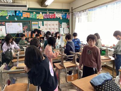 3年生は,花道を通る6年生に「ありがとう」と伝えたり,ハイタッチをしたり,涙を流したりと,一人一人が別れを惜しみました。教室に戻ると「私たちも6年生のようになりたい!」「かっこよかったね」と話す姿がありました。3年生も残り4日となります。来週は,学年のお別れレクがあります。残された時間,3年生らしく、駆け抜けてほしいと思います。