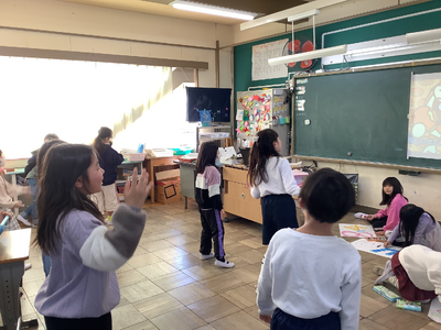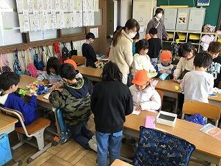 1月26日に生活科で,地域の方々と昔の遊び交流会を行いました。こま,あやとり,かんぽっくり,けん玉,まりつき,お手玉を教えていただきました。「学校に来るときに,登校を見守ってくれてる人もいたよ」「優しく教えてもらって,できるようになったよ」「もっと一緒に交流したいな」と,子供たちは嬉しそうに感想を伝えていました。教えていただいて,できるようになってきたこま回しやあやとりを教室でも楽しんでいます。