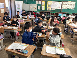 1月28日には昔の学習の出前授業がありました。酒井根小学校や酒井根地域の昔の様子,給食の歴史を学習し,昔の教科書に触れさせてもらいました。様子の変化に子供たちは「えーーー!!畑が学校になったの?」「昔は家が少なかったんだな!!」と驚いている様子でした。