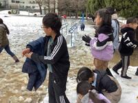 今年初めて降った雪に子供たちは大興奮でした。1時間目に全員で校庭に出て,雪だるまを作ったり,友達や先生と雪合戦をしたり・・・特別な時間を過ごしました。栗原先生もゴーグルをつけて,準備満タンで雪合戦に挑んでいました★3年生と過ごせる残りの時間も,担任一同全力で楽しんで行きたいと思います。