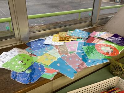 2月は様々な行事を予定しています。その行事に向けた装飾づくりを行いました。折り紙を切って雪の結晶のような飾りを作ったり,紙コップでお花のような飾りを作ったりしました。