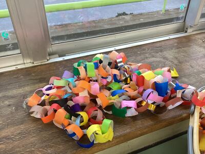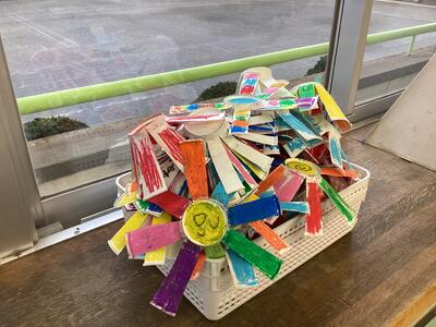 子供たちは工夫を凝らし,空間を華やかにするための装飾を,一所懸命に作っていました。できた飾りを嬉しそうに持ってきてくれる子供たちばかりで,自分たちの飾りに満足している様子でした。その自慢の飾りたちが,当日どのように輝くのか,とても楽しみです。