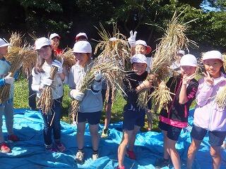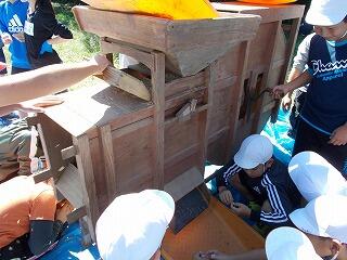 子どもたちは普段使うことができない脱穀機や唐箕を目を輝かせて生き生きと取り組んでいました。