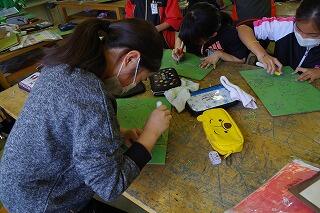 こちらは図工で版画をほっている様子です。色鮮やかで素敵な作品に仕上がっています。