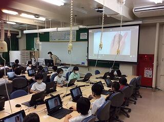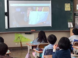 今はコロナ対策で学年で集まることができないため,聞いたことをオンラインで他のクラスに発表しました。