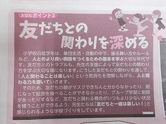 本日,配付いたしました「広報かしわ別冊まなふる第2号」に酒井根小学校が紹介されています。「先生たちが今大切にしている4つのこと」のうちの一つである「友だちとの関わりを深める」のコーナーで,1年生の様子が掲載されています。ぜひご覧ください。