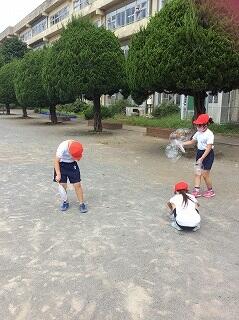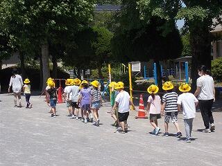 なかよしタイムには,みんなで校庭をおさんぽ!