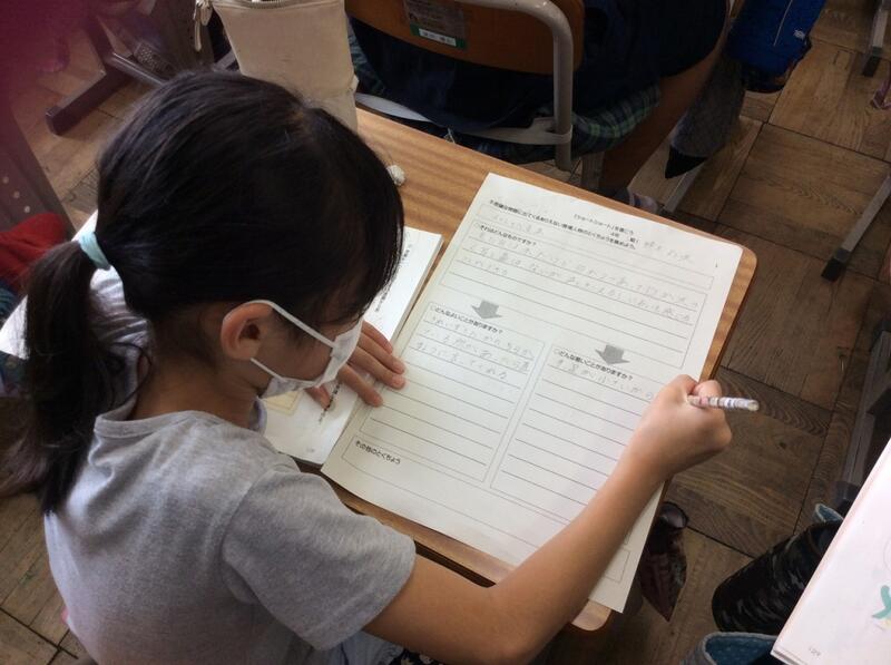 班ごとに,友達の「夏の思い出」について記者になりきったつもりでインタビュー活動を行いました。上手く聞くことができましたね。