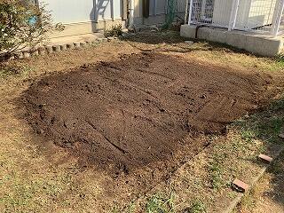 朝のうちに花壇から土をとって,少し天日干ししました。