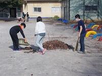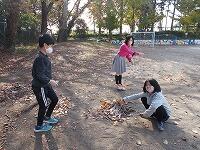 この後,大きなキャンパスに使った落ち葉や枝をきれいに片づけてくれました。