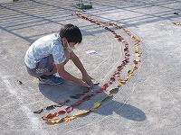 校庭を大きなキャンパスに見立てて,創作活動をしているところでした。