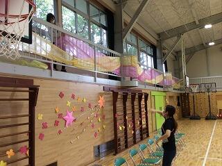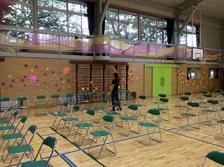 少しでも,5年生の思いを6年生に届けるために,体育館の飾りつけを行いました。レイアウトからしっかりと考えられていて,とても上手に掲示することができました。体育館が一気に華やかになりました。