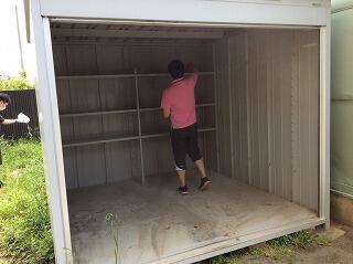まずは倉庫の中身を全部出し,ほうきで砂を出しました。