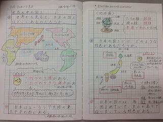 社会科では,日本の国土について学習しています。世界から見た日本の姿に目を向け,世界の広さに触れました。