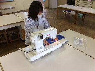家庭科で使うミシンで試しに布を縫ってみました。学校再開までに,すべてのミシンが使えるか確認しておきます。