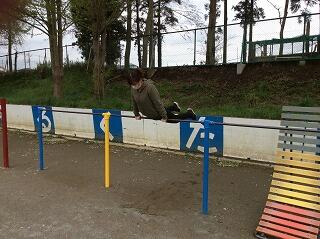 体育では鉄棒を行います。5年生は少し難しい技にも挑戦しますので,楽しみにしていてください。