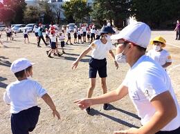 いざ,たこあげ開始!!すると,疲れを知らない1年生の走りっぷりに6年生は息を上げていました。しかし,さすがは最高学年。1年生に優しい声掛けをして,楽しく活動できるようにサポートをしていました。ほかの人とぶつからないように,先導したり,絡まったらほどいてあげたりとどんな問題も6年生が解決していました。