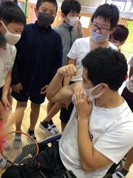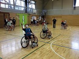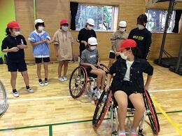 昨年の車いすバスケットボールに続き,実際に車いすに乗って体験させてもらえました。