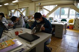 さまざまな意見を交換しながら,新しい方法を考えています。