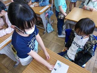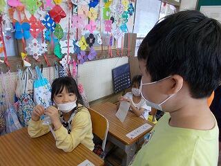 今日は,2年生の子供たちが1年生の時に育てたアサガオの種と,気持ちを込めて書いたお手紙を1年生にプレゼントしに行きました。