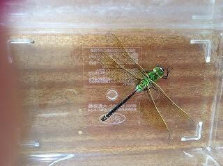 正解は・・・ギンヤンマです。大きなヤゴがギンヤンマになりました。成虫になっても大きいです。体の色も緑色できれいな色をしています。