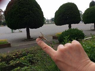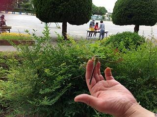 この前プールで捕ったヤゴがトンボになり,自然に戻しました。