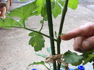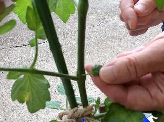 中心の茎に栄養を集めて,実を大きくするために,芽かきをしました。