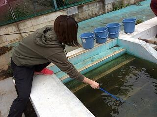 プールに産み付けられたトンボの卵がかえり,トンボの幼虫「ヤゴ」がいっぱいプールにいます。今日は,先生たちでヤゴ取りをしました