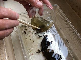 水槽に入れ替えて,エサ(アカムシ)もやりました。