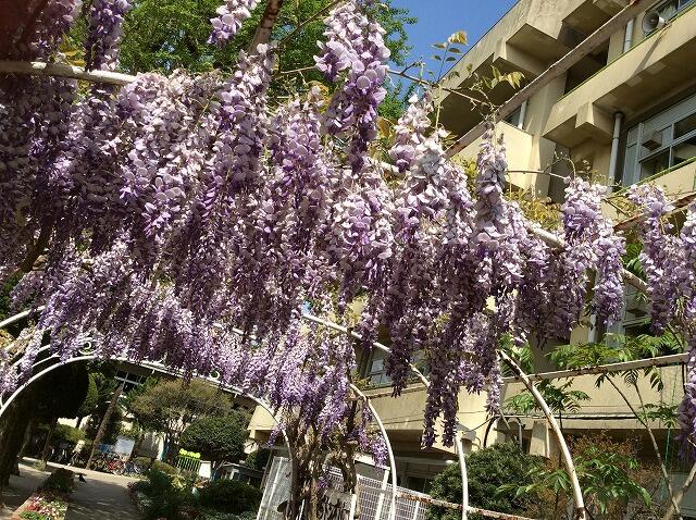 酒井根小学校の校庭にはきれいな色の花がたくさん咲いています。