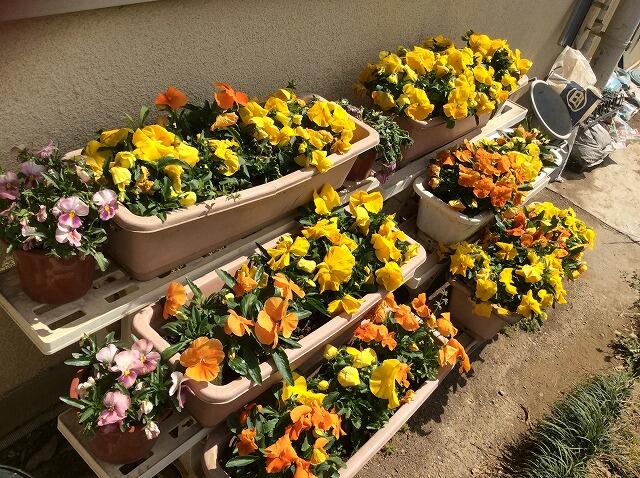 クラスごとに職員室前のネット下に植えていきます。