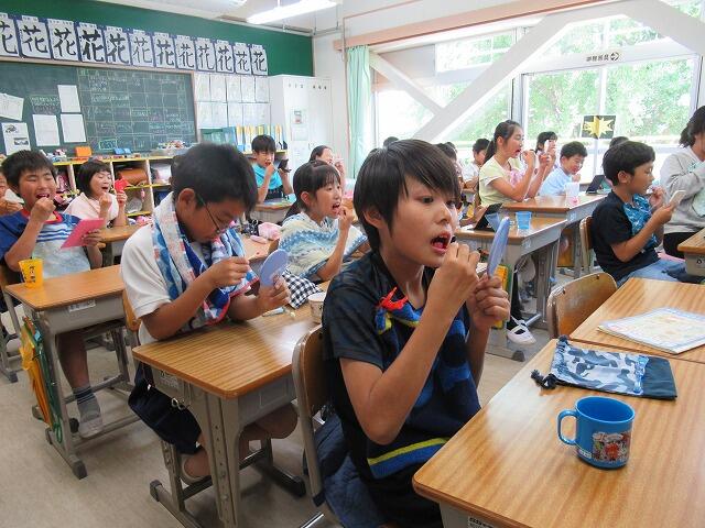 5・6年生の保健委員が教室に来て,染め出し検査を行ってくれました。